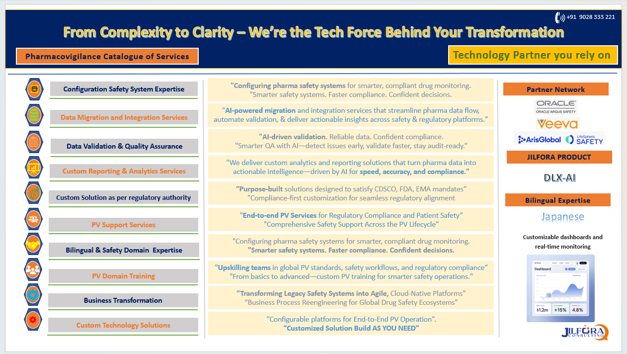 This is a product having the capability to load, manage, and extract required configuration, migrate data from multiple sources (Classic + XML+ non-E2B, i.e., Excel, etc.) to the target, automate draft mappings and anomaly findings, data extraction, validation, custom reporting, and other regulatory requirement analysis.